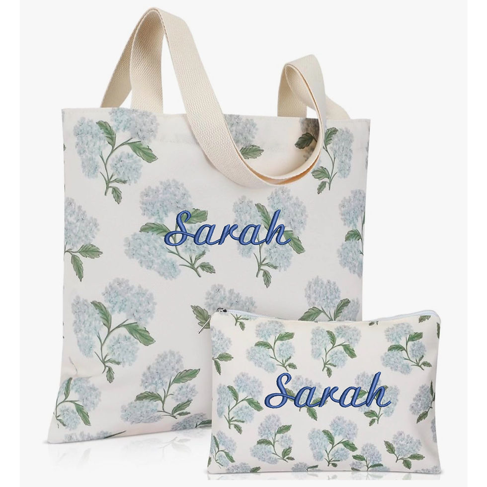 Personalized Floral Hydrangea Tote Bag & Cosmetic Pouch Set